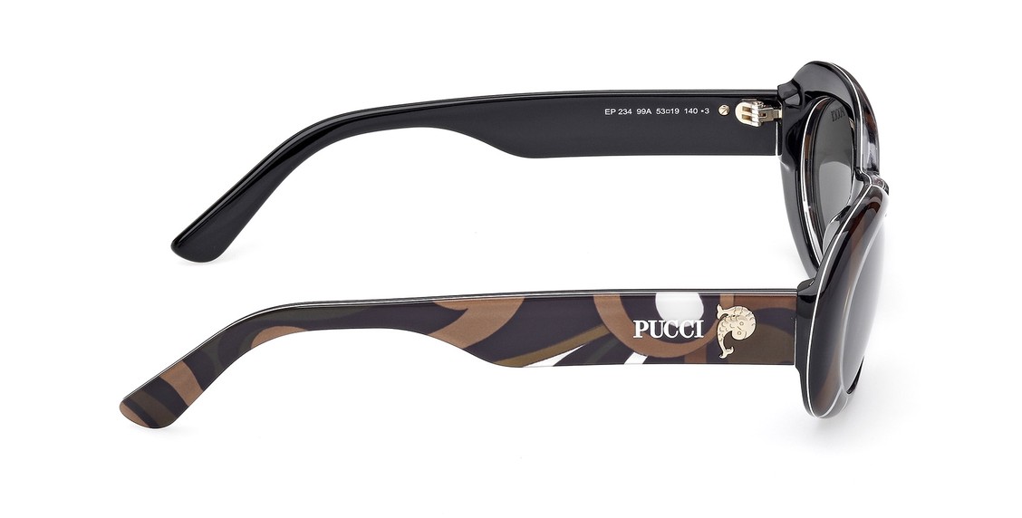 Оправа Animal/Texture в глубоком чёрном оттенке с фирменным анималистичным текстурным принтом подчеркивает уникальность модели EP 0234. Овальная форма в сочетании с дымчатыми линзами Smoky создает ретро-образ с характером, который одинаково хорошо смотрится на пляже, в городе и в деловой обстановке. Ацетатная оправа обеспечивает легкость и долговечность, а удлинённые дужки длиной 140 мм гарантируют комфортную посадку.